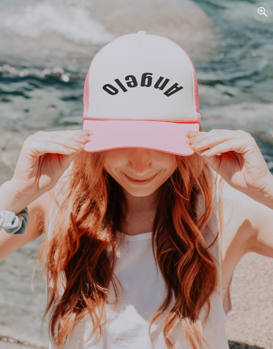 This Foam Trucker Hat is embroidered with the trendy backwards design of City Name Angelo, a shortened version of San Angelo. The hat is structured, made with 100% polyester front and mesh back, and features a seamless foam front panel with lining. Perfect for those looking to stay on top of trends and stand out in style.